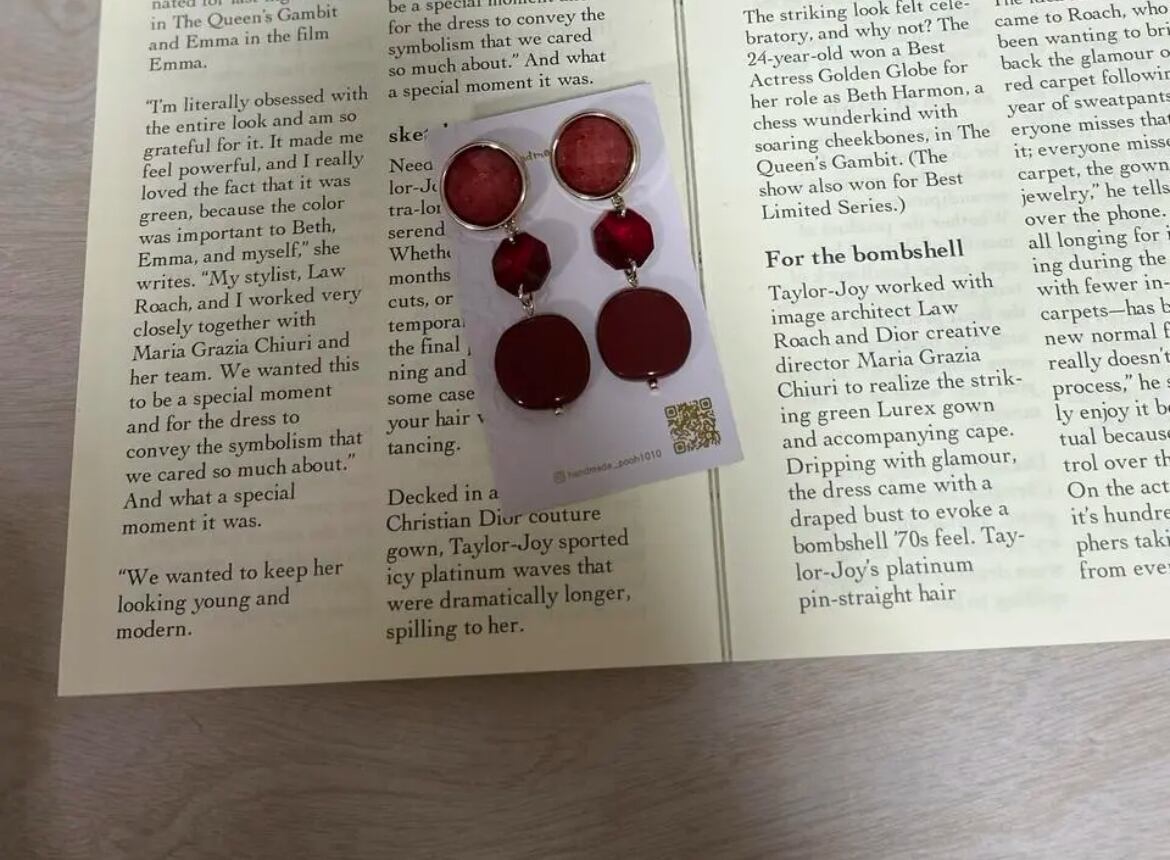 レッドカボション、ガラス六角形ビーズ、プラスチックビーズピアス
