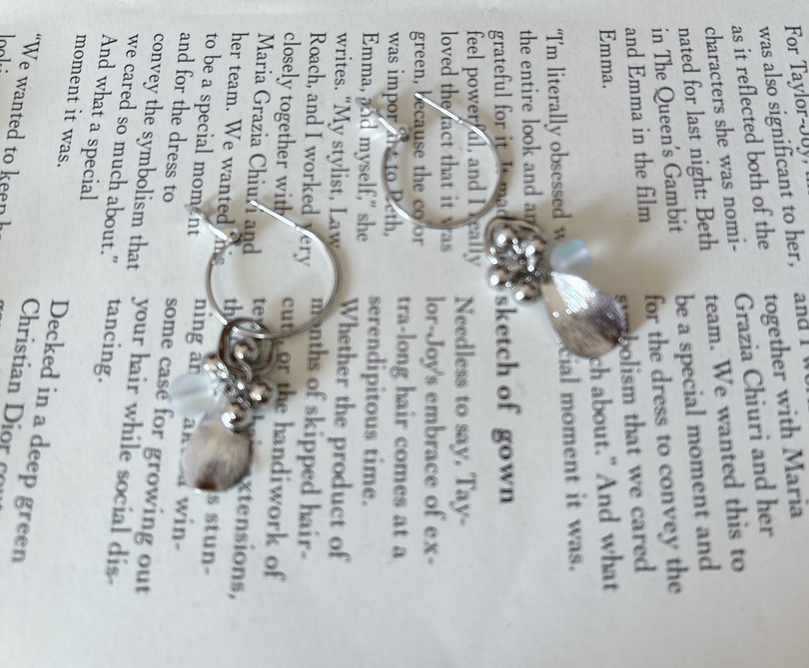 シルバーリングにシルバーボール、マットビーズでオシャレなピアスです。