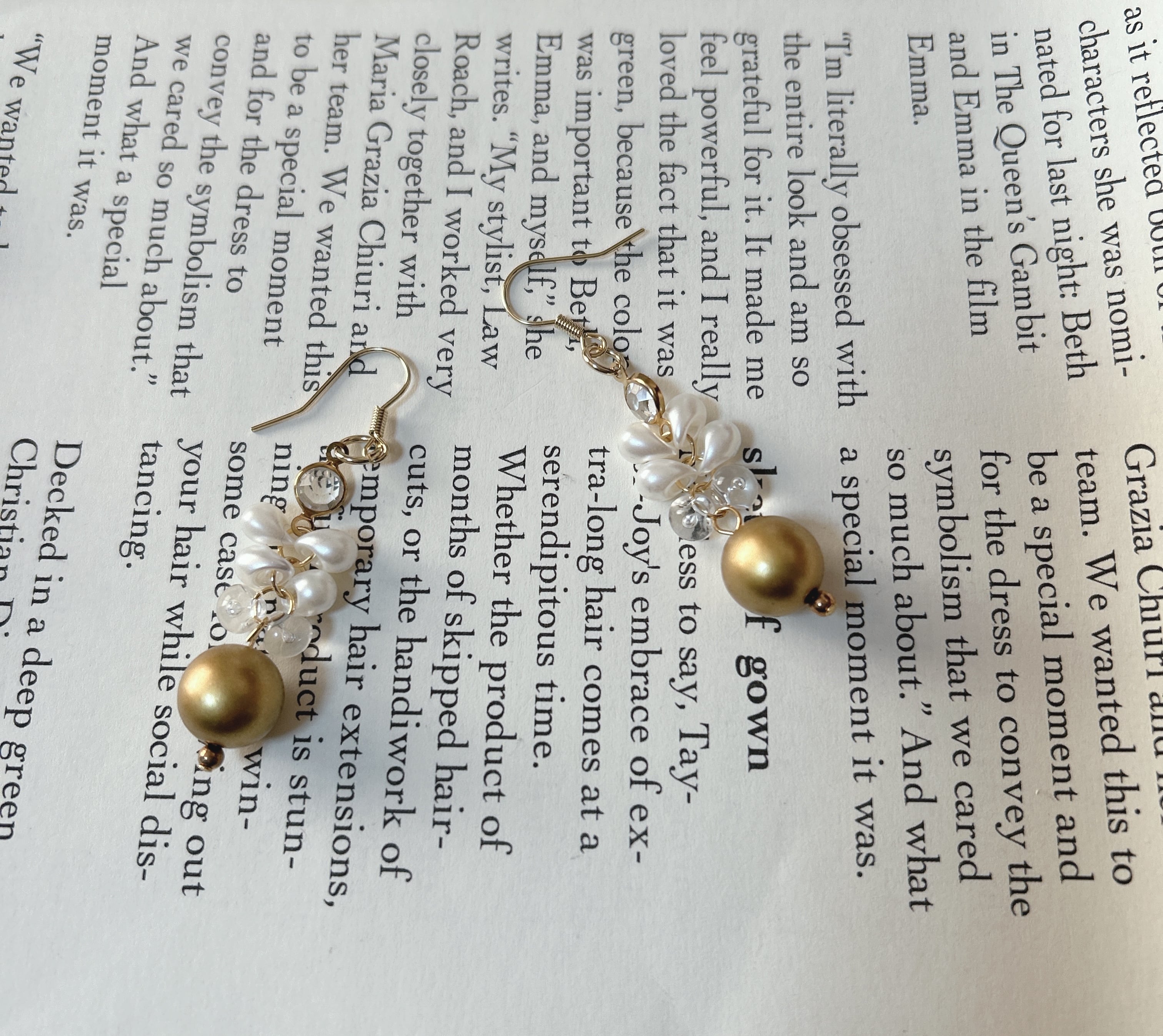 ゴールドパールに小粒クリアビーズとパールしずくでオシャレなピアスです。
